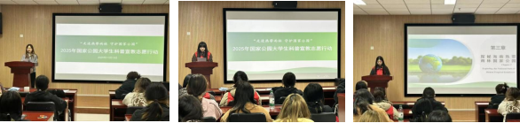 第一阶段,西北大学“艺绘自然”国家公园科普宣教志愿宣讲团负责人谢祖晓同学简短地介绍了团队情况与工作愿景,团队成员郝宇晨、王姚宇两位同学图文并茂,生动讲解国家公园的宏观布局、建设意义、生态价值以及海南热带雨林国家公园独特的生态魅力与保护价值。