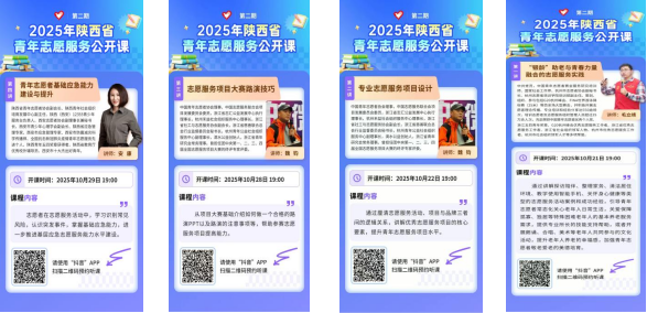 10月下旬,学院组织志愿者积极参与陕西省青年志愿服务系列公开课学习。课程涵盖助老实践、项目设计、路演技巧与应急能力等内容,为志愿者们提供了系统的理论指导与实务训练,提升了专业服务能力。