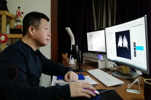 接着小编来到了张哲老师的工作室,张老师正在为2019级设计1班的同学讲解《数字图形基础》,张老师充分发挥线上教学优势,通过分享屏幕演示数字设计的方式方法与操作技巧,非常清晰直观的向同学们进行反复演示,大大提高了学生的学习主动性,教学质量得到提升。